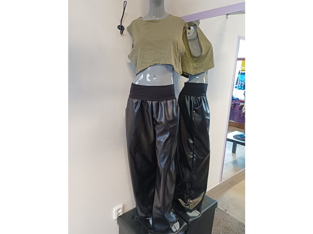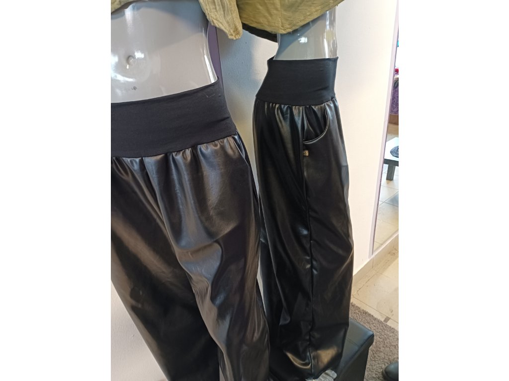 Z lehce lesklé umělé kůže, z vnitřní strany je příjemný chloupek. Jsou tedy zateplené a nestudí na kůži. V pase mají pohodlny široký bavlněný náplet a dají se nosit jak vysoko v pase, tak na bocích.