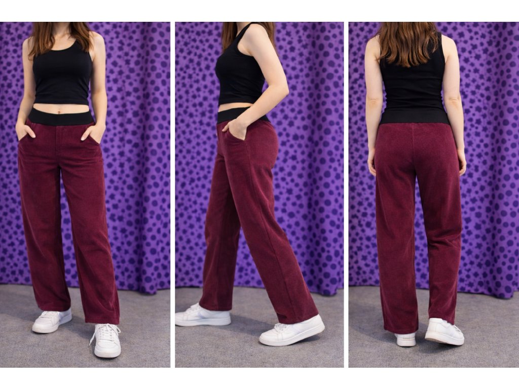 Dámské manžestrové kalhoty Bordó