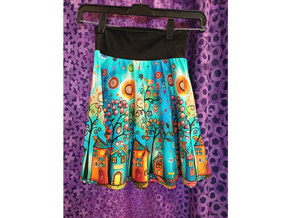 Dětská půlkolová sukýnka s krásným výrazným potiskem. Z bavlněného úpletu do pružného pasu, který se krásně přizpůsobí a díky němu sukýnka vydrží i když děti rostou.
