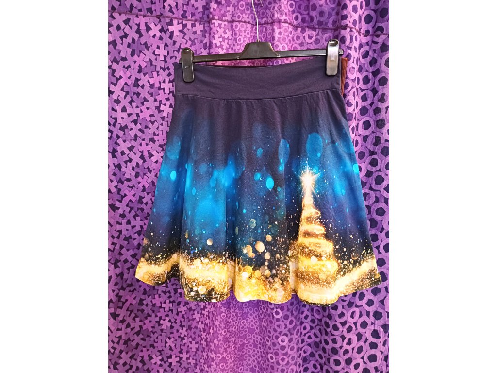 Originální půlkolová sukně, která kombinuje jednoduchou eleganci s hravým motivem. Pružný pas do hladkého nápletu, díky kterému se perfektně přizpůsobí postavě a zajistí maximální komfort při nošení. Nádherný motiv pro vánoční sukni vhodnou nejen na večírky, ale i na běžné nošení.