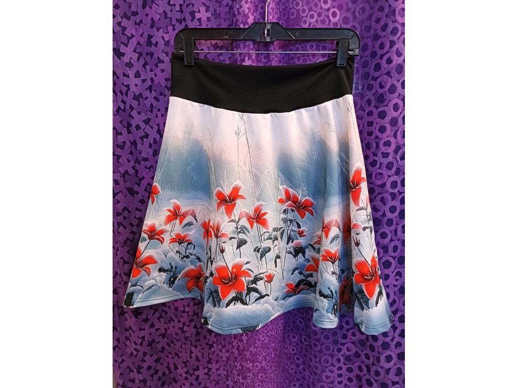 Půlkolová sukně Zmrzlé květy – pohodlí a hravost v jednom