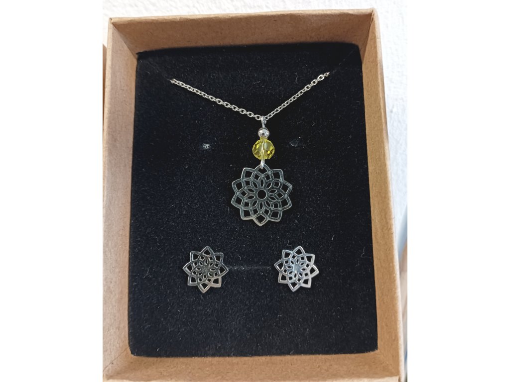 Dopřejte sobě nebo někomu blízkému originální šperk, který potěší. Tato elegantní sada šperků od značky Kreativně s Móňou je vyrobena přímo pro Pettmel a zahrnuje náušnice a řetízek s přívěskem ve tvaru mandaly, vyrobené z kvalitní chirurgické oceli, která je odolná, hypoalergenní a vhodná pro každodenní nošení.