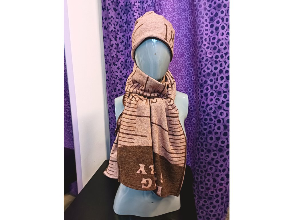 Originální doplněk s netradičním potiskem krejčovského metru. V sadě je dlouhá šála a čepice, která má navíc možnost prostrčeni culíku ven. Jinak je čepice krásně ozdobné uzavřena a otvor na culík není vidět.