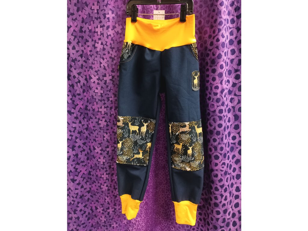 Kalhoty mají zdvojená kolena, aby vydržely i pořádné dovádění, a jsou šité z zimního softshellu s vnitřní vrstvou fleecu, který krásně zahřeje. Softshell má nepromokavé a neprofoukavé vlastnosti a ten náš navíc disponuje speciální protišpinicí úpravou – takže i když dítě spadne do bláta, stačí otřít vlhčeným ubrouskem a zábava může pokračovat.