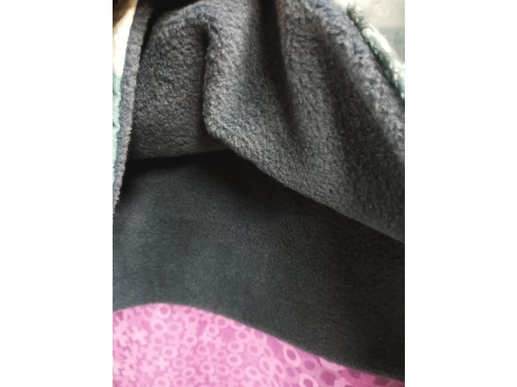 Vrchní materiál je velmi příjemný jemný šusťák 100% polyester, podšitý bavlněným teplým fleecem. Ideální do chladného a mrazivého počasí do města i do hor. Pas je do pružného hladkého nápletu, který se krásně přizpůsobí.