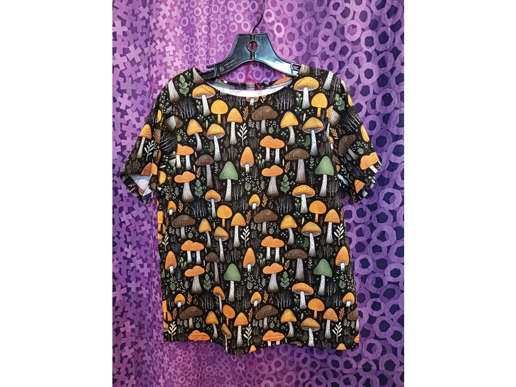 Roztomilé dětské tričko s krátkým rukávem a kouzelným motivem kozáků a dalších houbiček v jemných zemitých barvách je jako stvořené pro malé milovníky přírody a podzimních dobrodružství. Vyrobené z kvalitního bavlněného úpletu, zaručuje pohodlí po celý den.