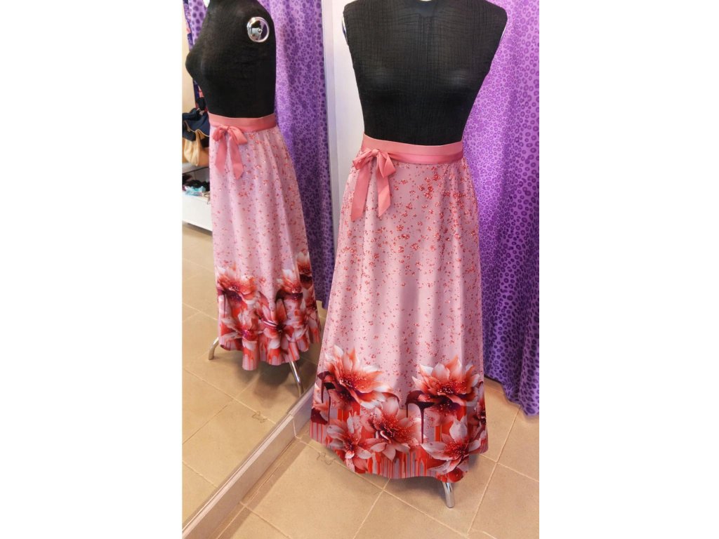Tato sukně je ideální na horké letní dny, dovolenou či slavnostní příležitosti a plesy. Svým půlkolovým střihem působí elegantně a díky jemnému materiálu krásně splývá. Zavinovací sukně mají skvělou výhodu, že se přizpůsobí Vám.