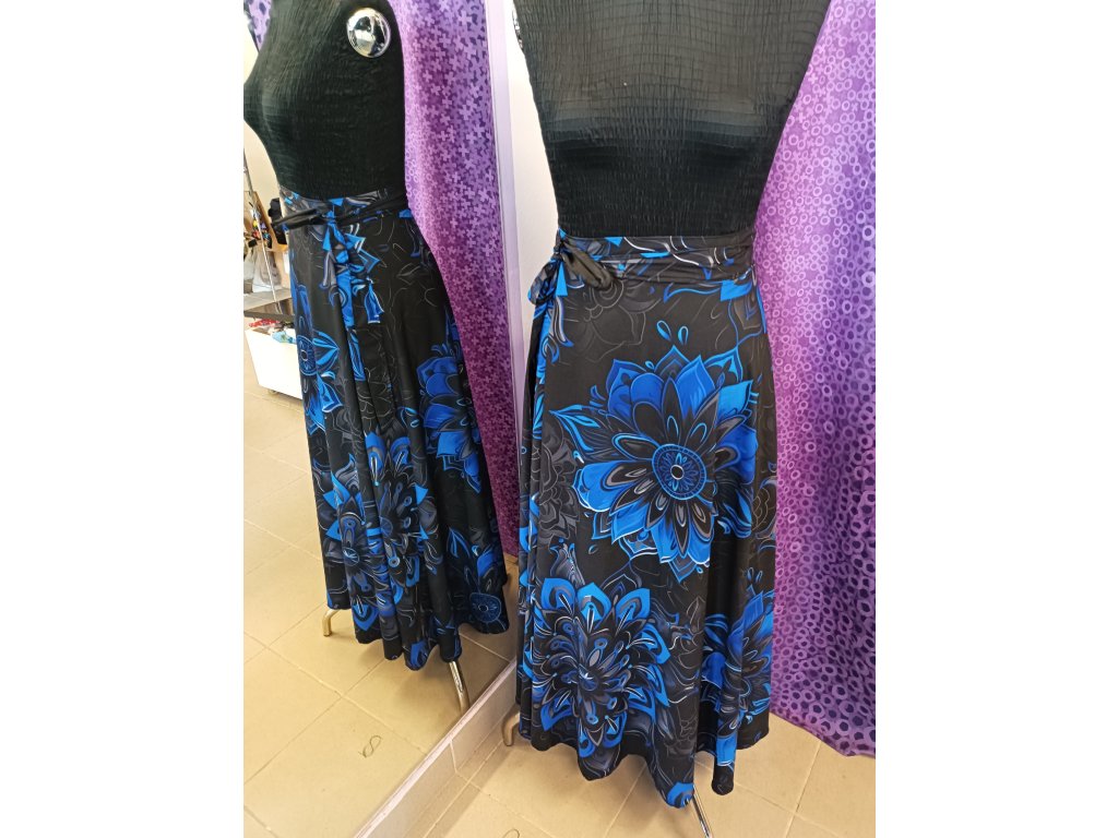 Tato sukně je ideální na horké letní dny, dovolenou či slavnostní příležitosti a plesy. Svým půlkolovým střihem působí elegantně a díky jemnému materiálu krásně splývá. Zavinovací sukně mají skvělou výhodu, že se přizpůsobí Vám.